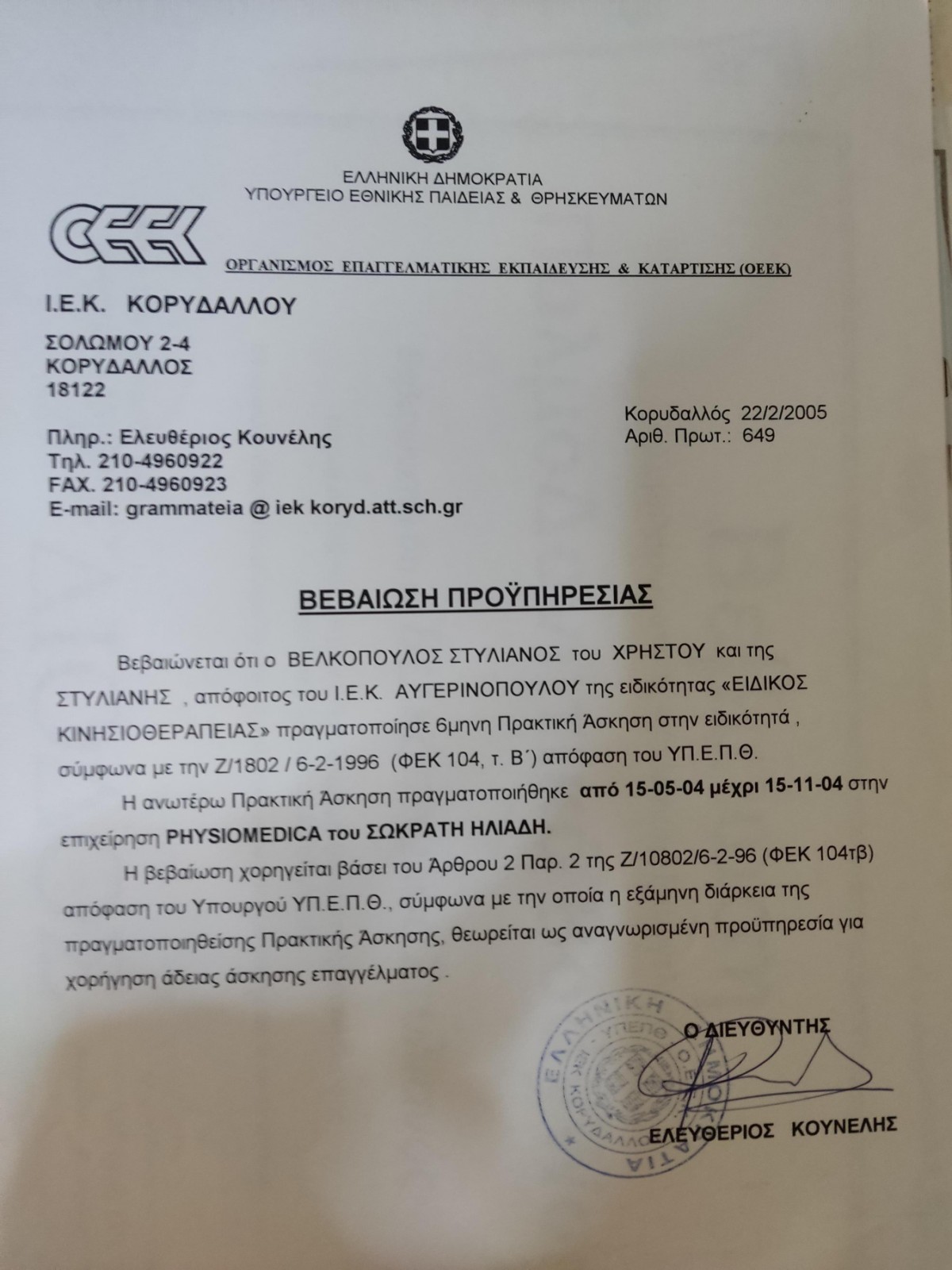 Τηλέφωνο Επικοινωνίας: